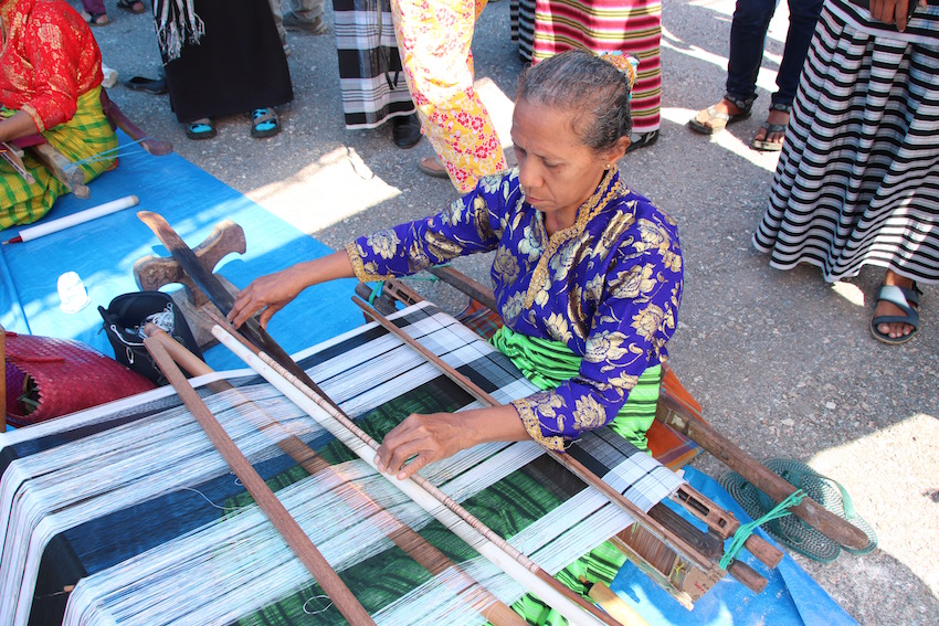 De dag daarna is de grote feestdag voor de regio. We zien vrouwen aan weefgetouwen om de sarongs te weven. We zien mooie jonge meisjes prachtig gekleed. En we eten samen met de Indonesische mensen aan grote baskets gevuld met voedsel. Helaas moeten daar ook weer langdurige Indonesische speeches bij gehouden worden. Als klap op de vuurpijl 5000 studenten die dansen op een groot veld. In de bloedhitte worden er verschillende dansen uitgevoerd. Het is prachtig om te zien, alle kleuren, alle jonge mensen en dansen.