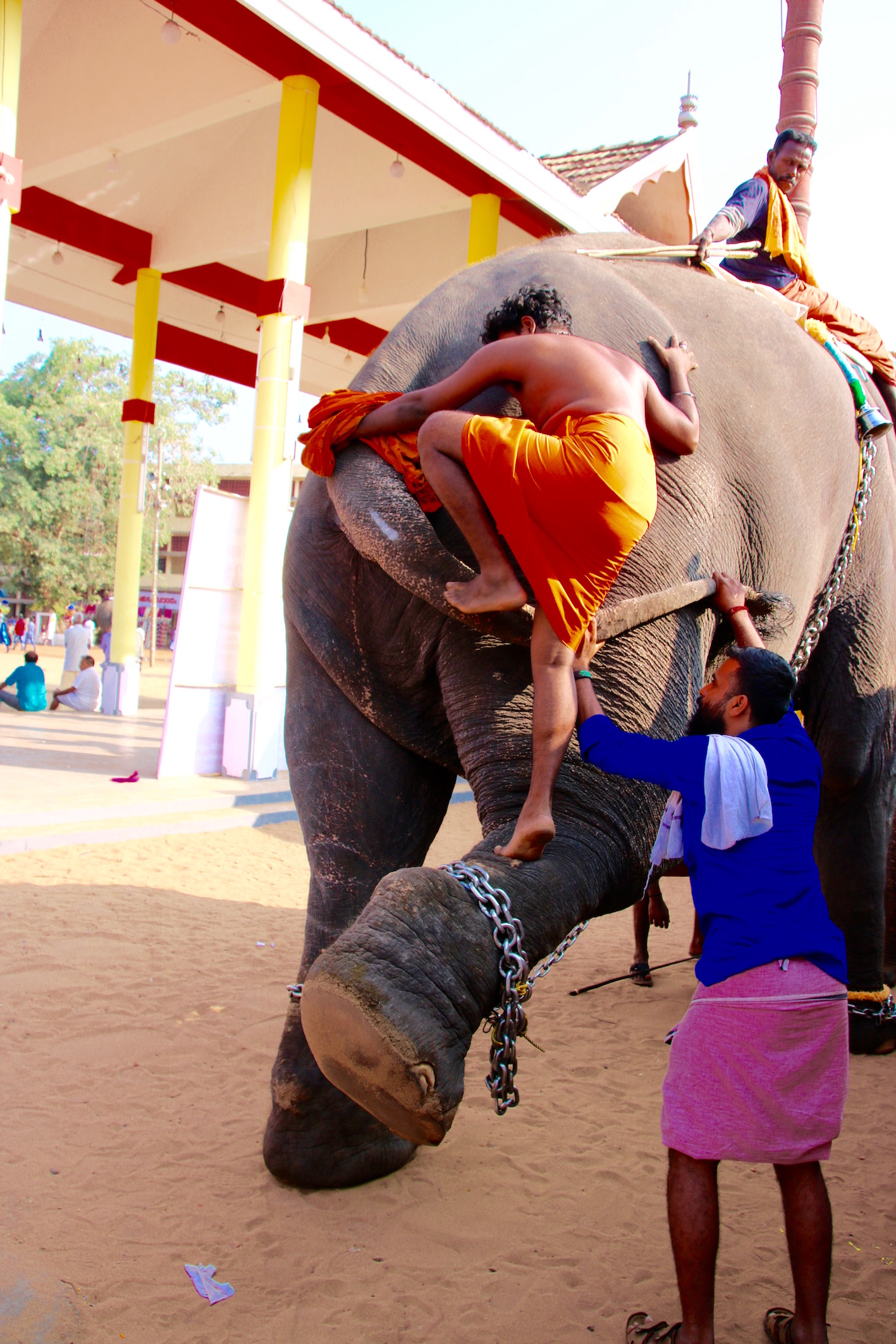 We gaan diezelfde dag nog met ‘Nazar’ (eerder agent genoemd), de man die helpt met alles wat je doet in de marina en die advies geeft en tripjes organiseert als je wil, naar een Hindu feest met olifanten een paar dorpen verderop. Hij brengt ons met zijn tuktuk over de vierbaansweg scheurend, vrachtwagens inhalend, en nog maar niets te zeggen over het tegenverkeer. Frank en Sandra vinden het heel eng en gevaarlijk zoals er gereden wordt. We komen aan in een dorp en het blijkt dat de festiviteiten nog niet gestart zijn. We gaan dan eerst naar het strand, waar duidelijk de Indiase toeristen veel zijn. We lunchen aan het strand met scherpe groente curry en garnalen salade. Dan op naar de plek van de festiviteiten die maar 1x per jaar plaatsvinden. Talloze olifanten worden bereden en versierd. Prachtig om te zien. Ook maken we meteen kennis met de mensen zelf, die weer zo anders eruit zien als de mensen in Thailand of Maleisië.
