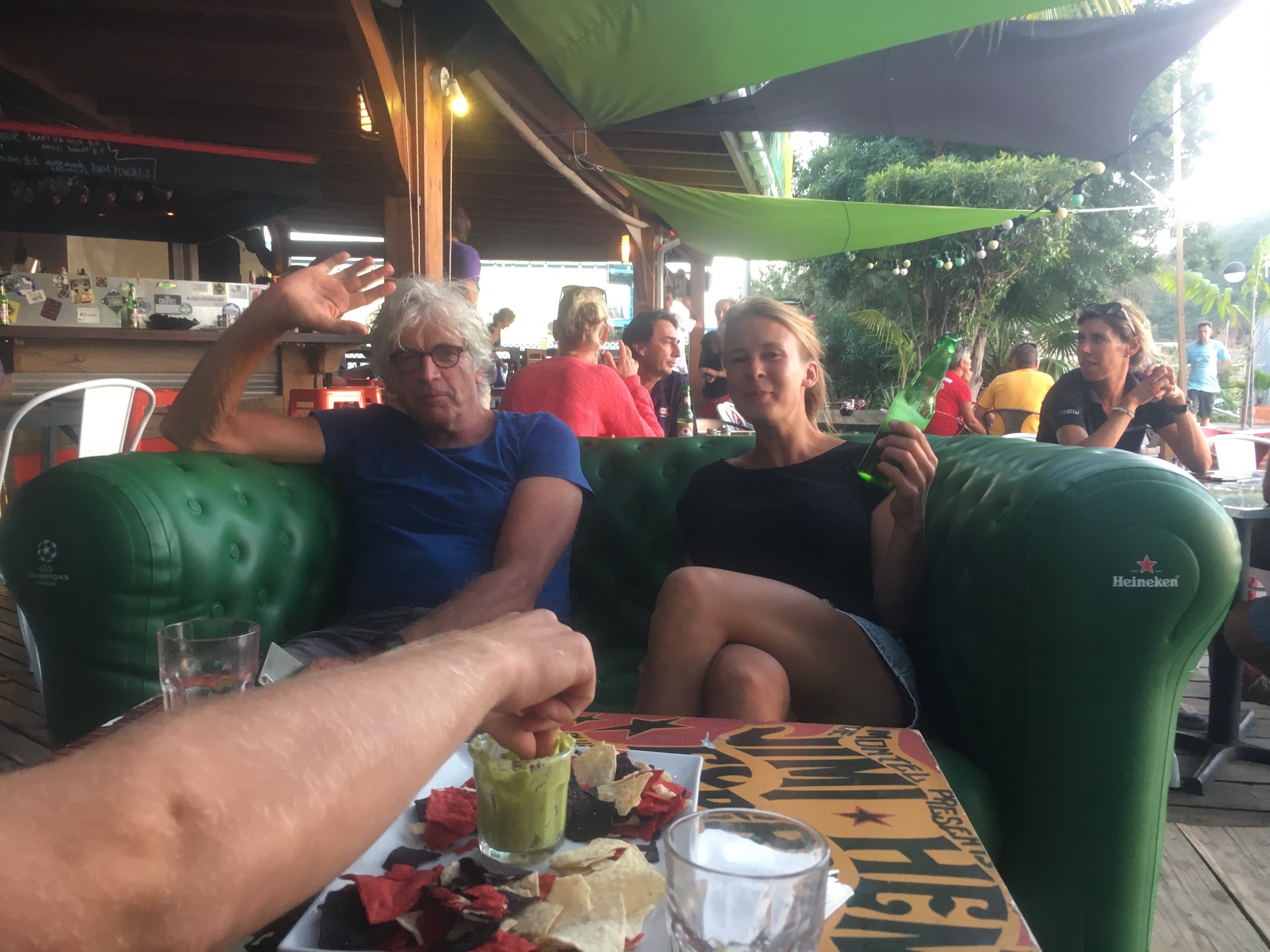 Volgende dag richting St Maarten, want we moeten het vliegtuig halen voor Michiel en Jits. Het wordt een lange dag, naar het noorden van Guadeloupe, Deshaies, waar we alleen even slapen en in- uitklaren en foto maken voor Ineke (Frank’s collega) en familie, die we jammer genoeg net gemist hebben, en dan door naar St Maarten. We maken een korte nachtstop bij St Kitts, moeten we maar bekijken op de terugweg…