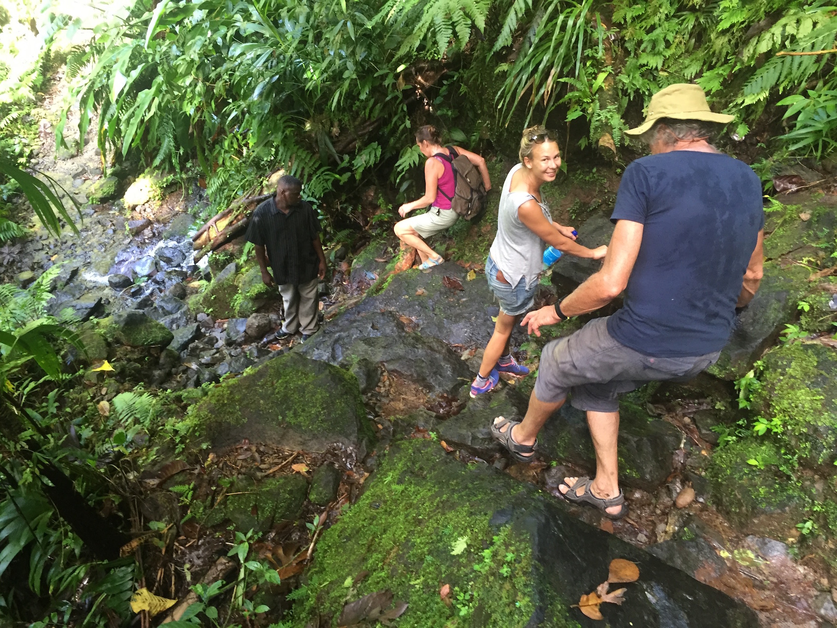 Dominica werd ons aangeraden. “Dat is zo’n mooi eiland!” We willen dus graag wat zien van het eiland. Terwijl Frank en Sandra weer gaan inklaren/uitklaren, gaan Michiel en Jitske op zoek naar een mogelijke “hike” /wandeling, over het eiland.