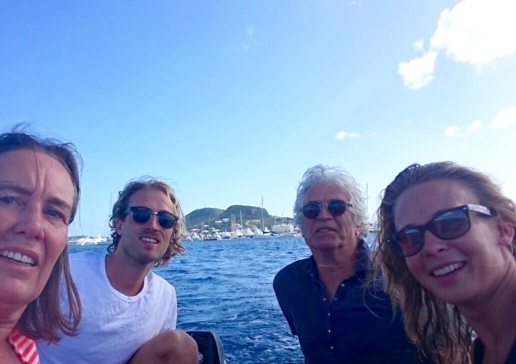 En we brengen 15 januari Jitske en Michiel naar het vliegveld (selfie in de dinghy!)