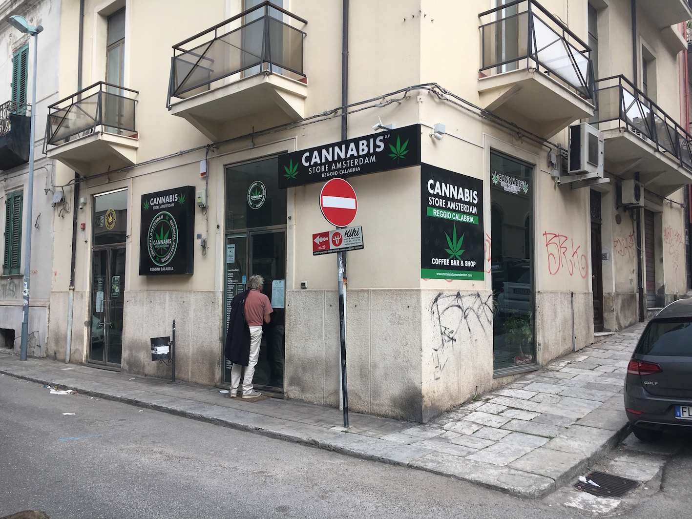De derde dag van de oversteek neemt de wind aan het eind in de straat van Messina flink toe. We roepen de marina aan, maar krijgen als antwoord dat het “impossíii-ble !!” is om daar binnen te komen, dus op het laatste moment draaien we de marina aan de ander kant in, Marina Reggio Calabria met toestemming van Paolo, wat later blijkt de man van de dieselpomp. In een krappe ‘berth’ draaien met 35 knopen wind lukt niet, althans we proberen het niet, de kans op schade is te groot, maar langszij de benzine /dieselpomp gaat wel, en daar liggen we dan prachtig tijdens de harde wind voor 2 nachten. Onze Blue Roger zit helemaal onder het zand van de Sirocco. De volgende ochtend komt een Russisch zeiljacht binnen, wat we op Zakhyntos ook hebben zien liggen. Met behulp van de Coast Gard en zo’n 10 man aan de kant lukt het hen ook om een plek te krijgen langs de kade. Gelukkig dat we dus inderdaad een nacht eerder zijn vertrokken!