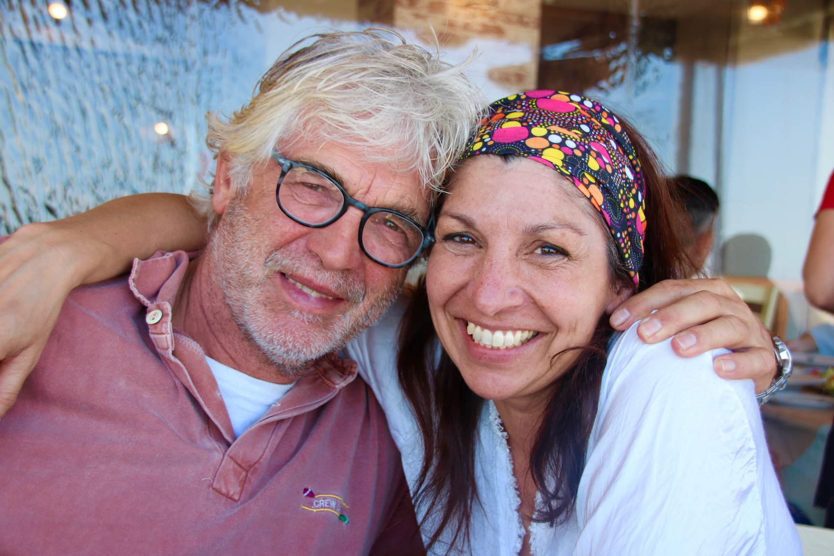 ’s Morgens vroeg hebben we na het douchen opeens geen water meer, de drinkwaterpomp (hydrofoorpomp) werkt plotseling niet meer. We hadden in Azië al eens eerder wat problemen gehad met deze pomp, maar Frank wist het altijd weer goed aan de praat te krijgen. Deze keer doet die helemaal niets meer. Gelukkig heeft Frank een extra pomp bij zich, en vervangt de hydrofoorpomp met een andere. Wel weer een dagje werk!! Altijd weer klussen! Want als we de fok (high aspect) gaan bekijken blijkt die hoog in de mast vast te lopen, en Frank vermoedt dat de top lager van de furler vast loopt. Mogelijk door al het zand wat we hebben binnen gekregen. Het zeil eraf halen met al die wind is geen sinecure. Het lukt maandag ochtend, vlak voor vertrek de boel te vetten en weer te hijsen.
