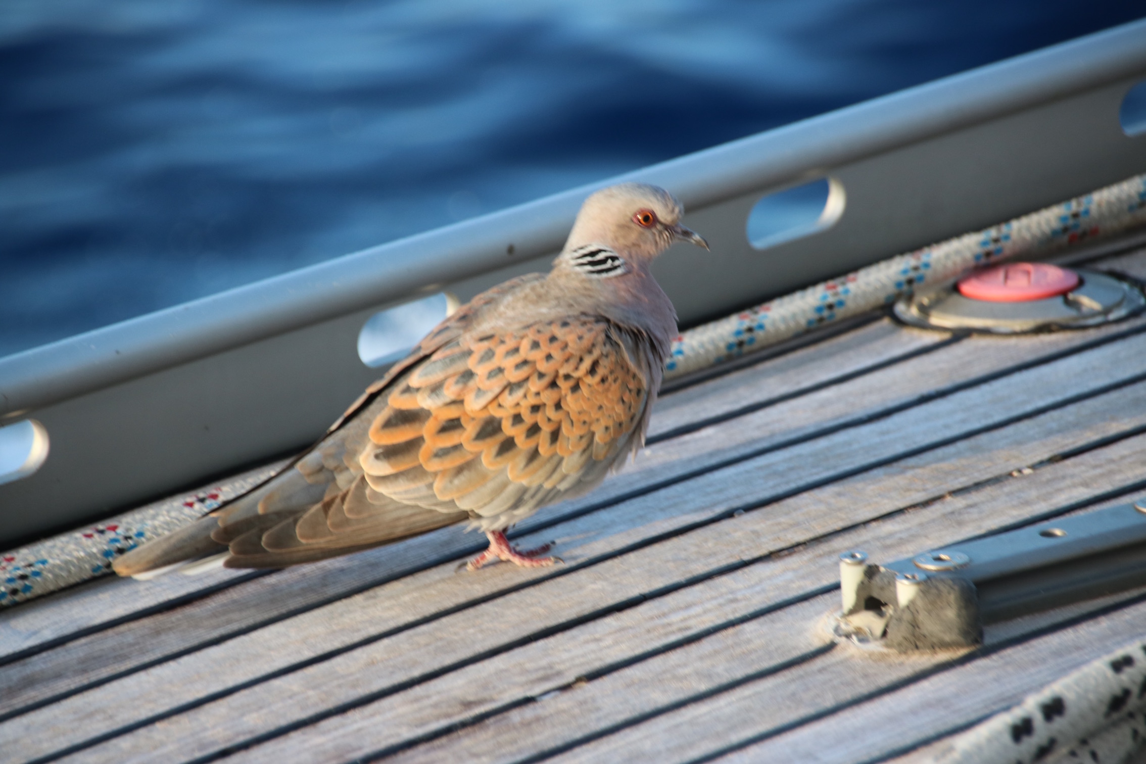 De eerste uren rond het eiland hebben we keiharde wind tegen, terwijl het donker wordt neemt dan ook de wind af en krijgen we een mooie halve wind richting Italië. De tweede dag hebben we weer vele dieren rond ons bootje, vogeltje/ duif/ dolfijnen. Leuk om te zien.